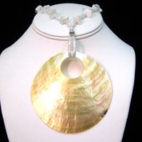 This large polished gold tone oyster pendant is held by a white shell strand. This is perfect for summer! If the shell strand is too short, simply add a necklace extender.